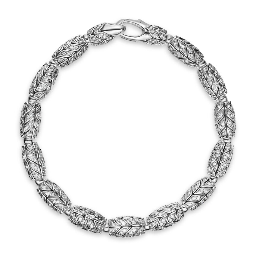 Sterling silver • Pavé-set diamonds, total carat weight ranges from 2.41 to 2.79 (dependent on size) • Bracelet, 7.5mm • Push clasp-